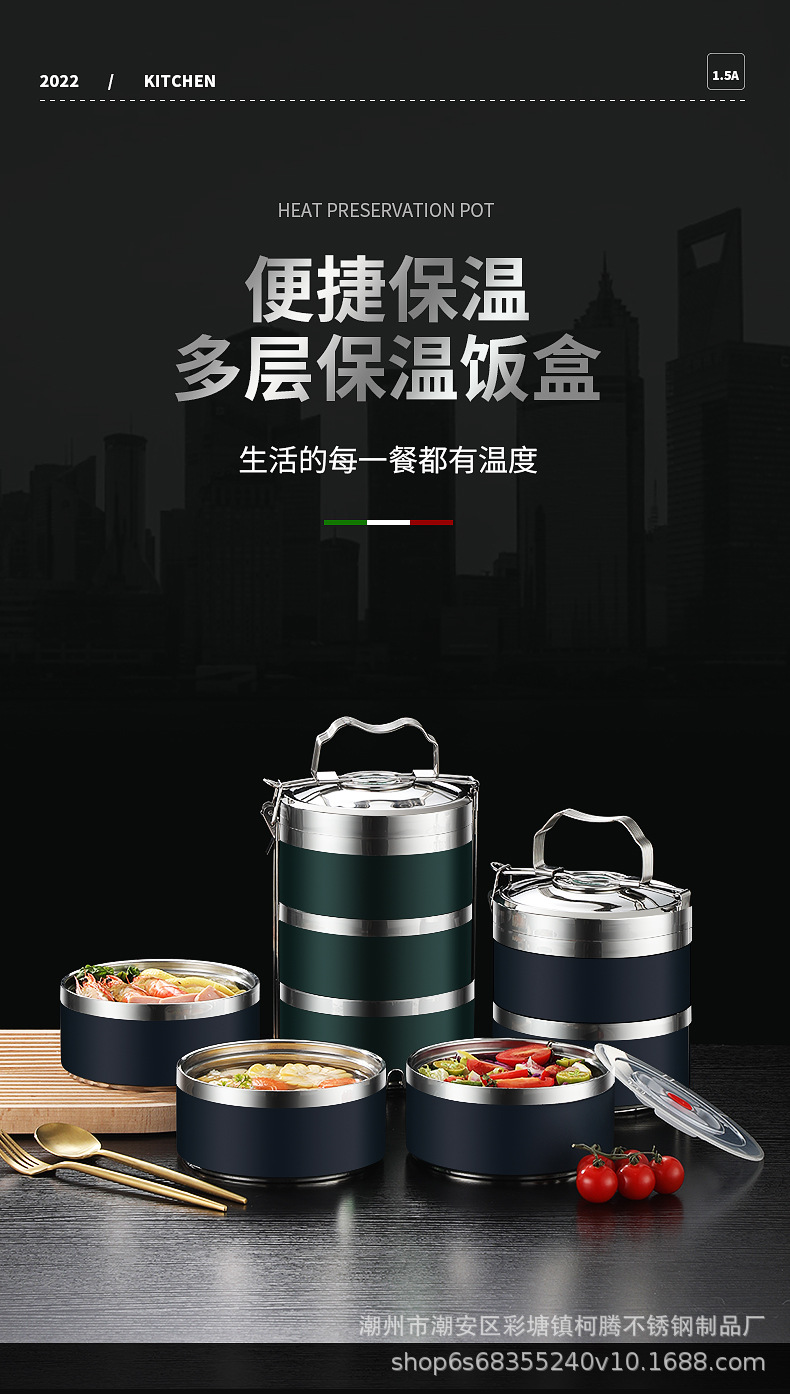304不锈钢食篮多层食格手提分格饭盒保温学生提锅户外双层便当盒
