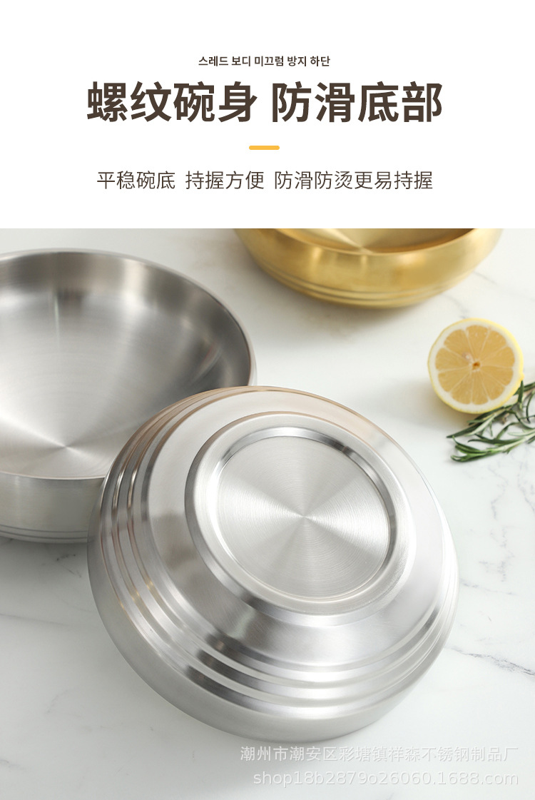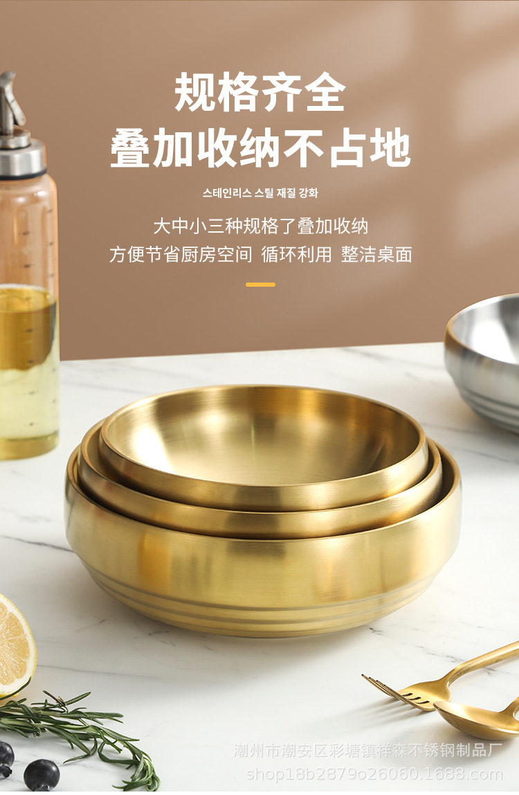 韩式冷面碗金色不锈钢泡面碗拉面碗双层韩式拌饭碗大汤碗螺丝粉碗