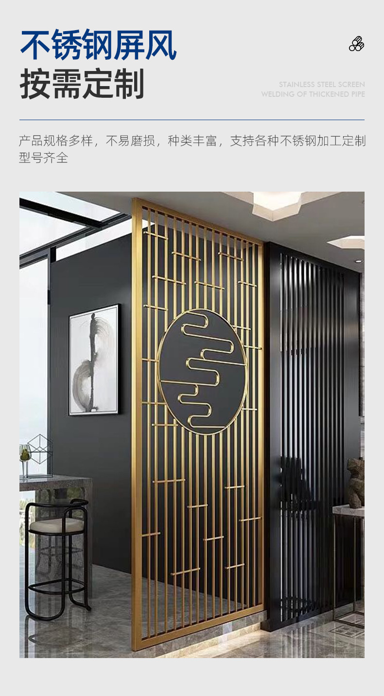 新中式不锈钢屏风隔断客厅钛金金属花格雕花镂空玄关铝雕轻奢批发