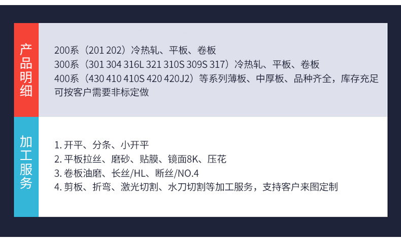 不锈钢及不锈钢制品、钢材、管材、铝材、建筑材料、金属材料、装饰材料批发、零售...