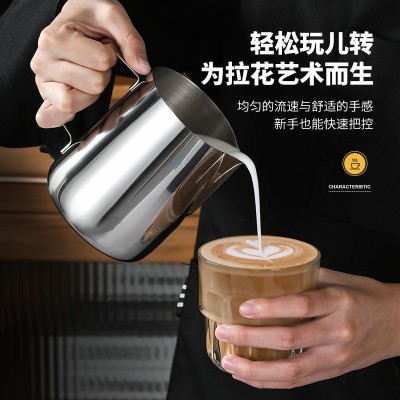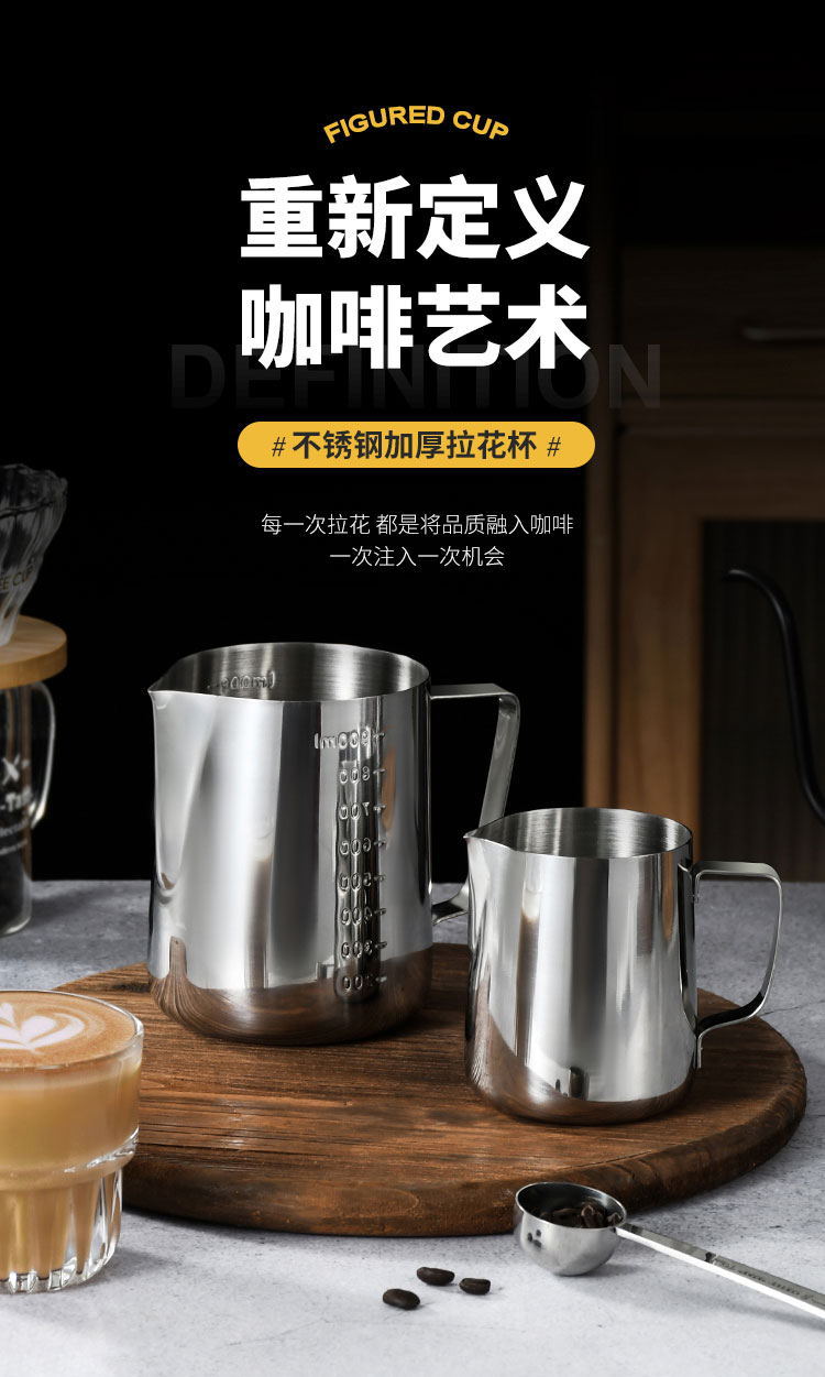 拉花杯带刻度尖嘴不锈钢咖啡杯拉花缸打奶杯溶蜡杯奶泡杯拉花神器