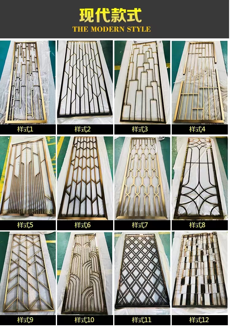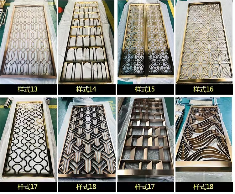 酒店工程别墅庭院不锈钢屏风新中式客厅入户玄关激光雕花镂空隔断