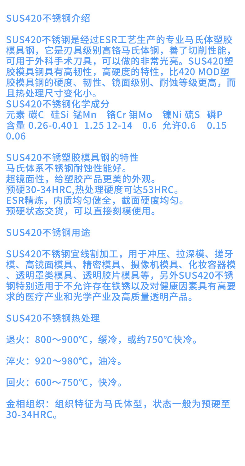 供应420不锈钢板材 镜面SUS420不锈钢板 高耐磨不锈钢库存充足