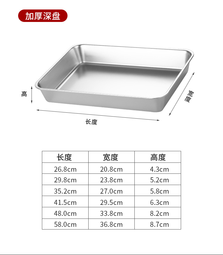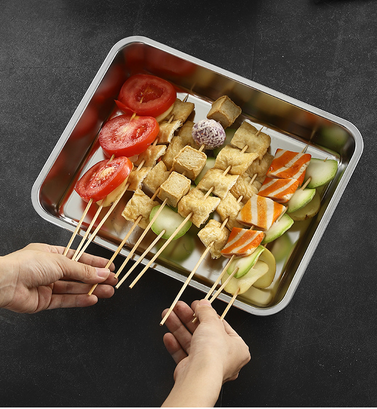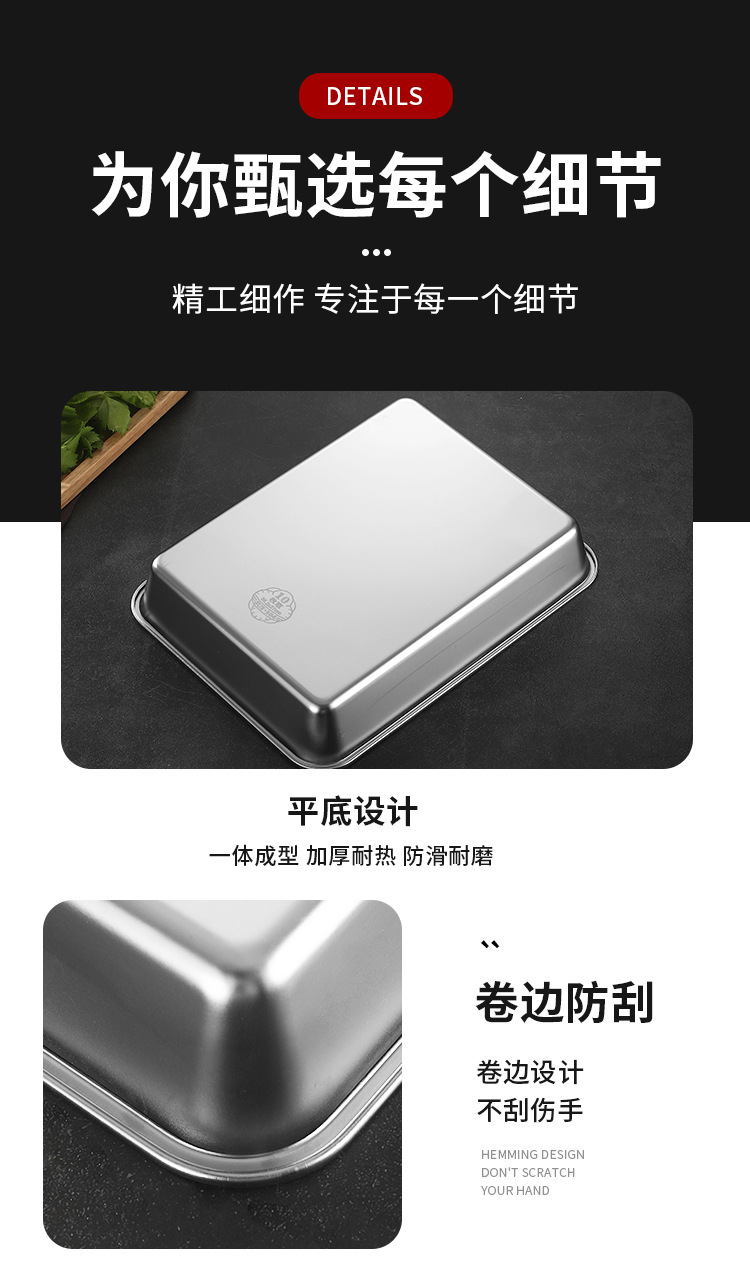 不锈钢方盘宽边加厚多规格家用餐饮烤鱼盘源头工厂烧烤盘现货批发