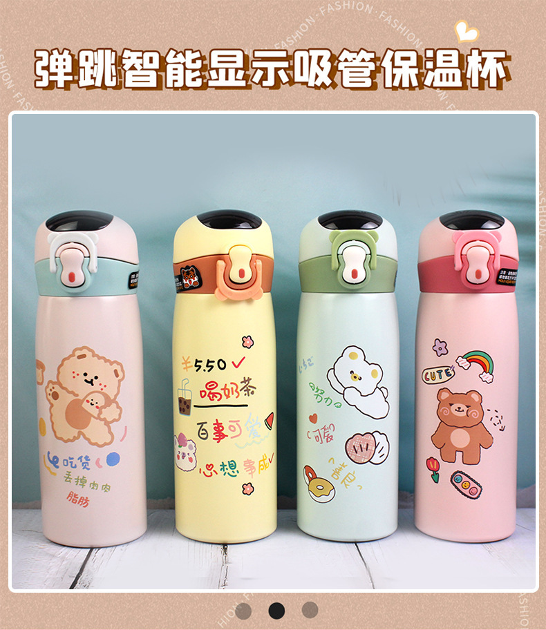 智能显温316不锈钢双层儿童保温杯 大容量带吸管便携杯高颜值水壶
