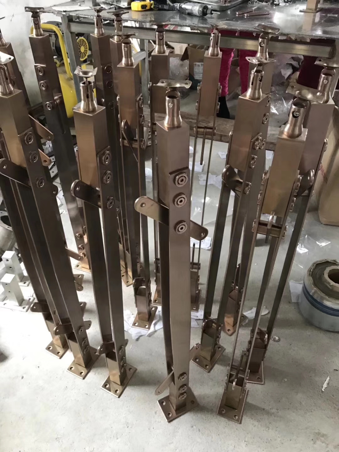 不锈钢立柱材质比较常用的是不锈钢201,304,310,316,321等,不锈钢立柱广泛应用于楼梯,过道,栏杆,扶栏,船舶等大型工程的扶手支撑柱,表面处理一般是磨砂拉丝,或镀金/镀铜。立柱主体板材一般选用6-15MM厚,市场上规格多为高度为850*50MM或1050*50MM,加上相应的配件(地板/夹具/方向头/连接头/摇头/封口/装饰帽/驳接爪/玻璃夹/玻璃幕爪/玻璃吊夹/ 玻璃托件)等。