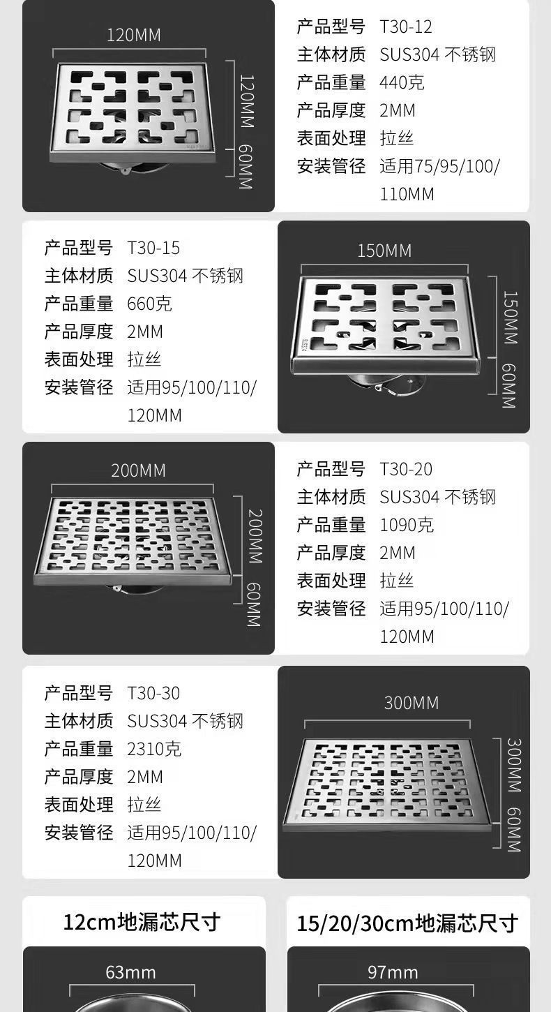 304不锈钢大排量大口径防臭地漏15/20/30cm室外庭院天台110-200管