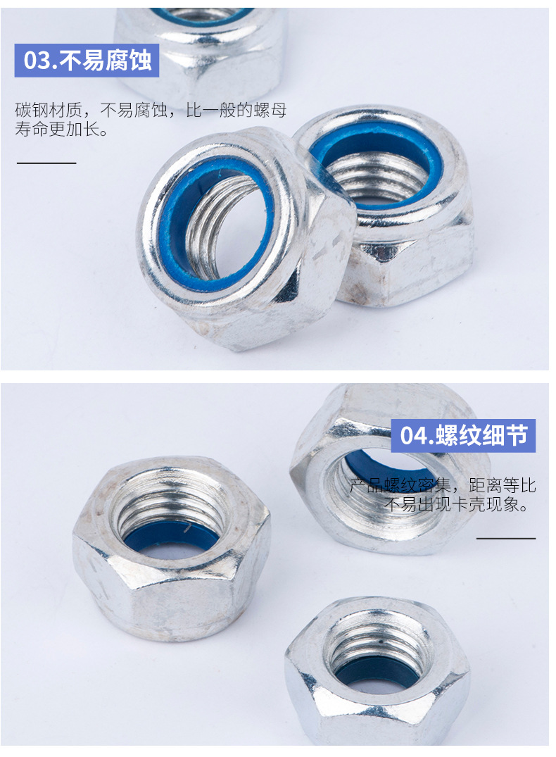 厂家供应可定自选不锈钢防松螺母 坚固好用镀锌多规格防松螺母