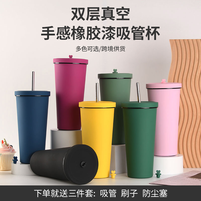 厂家直供大容量吸管杯夏季奶茶饮料咖啡杯304不锈钢保温杯印logo