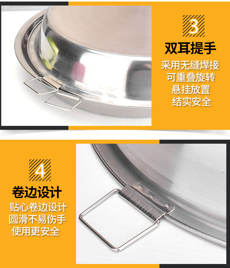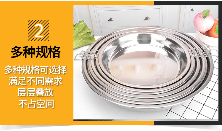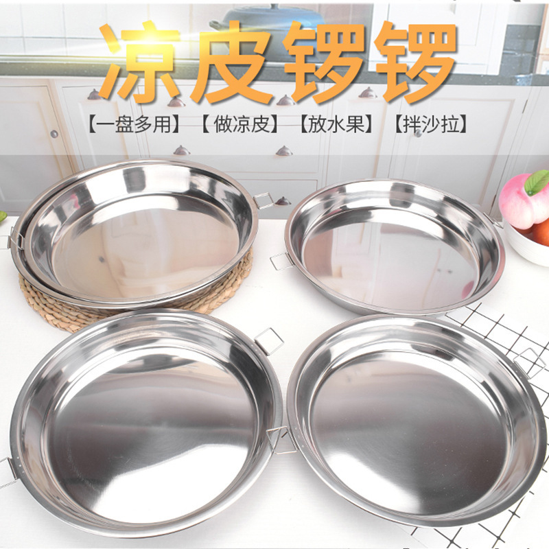 不锈钢蒸凉皮盘糕盘 家用加厚大圆盘商用平底多用盘饭盘 打印LOGO