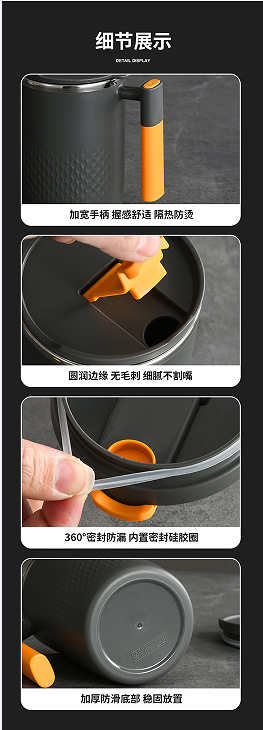 304不锈钢马克杯带盖加厚咖啡杯大容量果汁杯办公室早餐杯家用杯