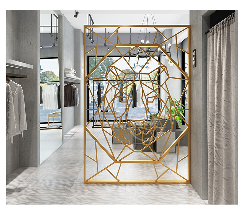 加工定制不锈钢屏风隔断 钛金镂空雕花竖条花格隔断金属中式客厅