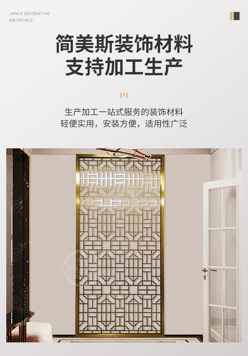 不锈钢屏风隔断 钛金镂空雕花竖条花格隔断金属中式客厅玄关折叠