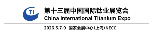 当前,全球制造业竞争日益激烈、技术变革不断加速,我国从自身优势领域出发,积极切入新一轮新技术革命,推动科技创新和产业创新深度融合,提升高端产品供给能力。传统产业改造升级、高新技术产业腾飞孕育的万亿级市场空间,成为钛产业迈入高速增长通道的强劲动力。为促进钛与新科技、新产业、新制造融合发展,打通“科研-产业-市场”链条,推进技术成果转化、产业协同创新及国际经贸互利合作,搭建国家战略与市场需求的双向链接平台,第十三届中国国际钛业展览会(TIEXPO2026)将于2026年5月7-9日在国家会展中心(上海)举办。本届展会将汇聚全产业链创新力量,共筑钛产业发展新生态,通过产品展示推介、前沿技术应用、供需精准对接、消费场景搭建多维赋能,实现钛材研发、装备制造与终端应用的深度链接,满足多领域快速发展对高性能钛材的迫切需求。