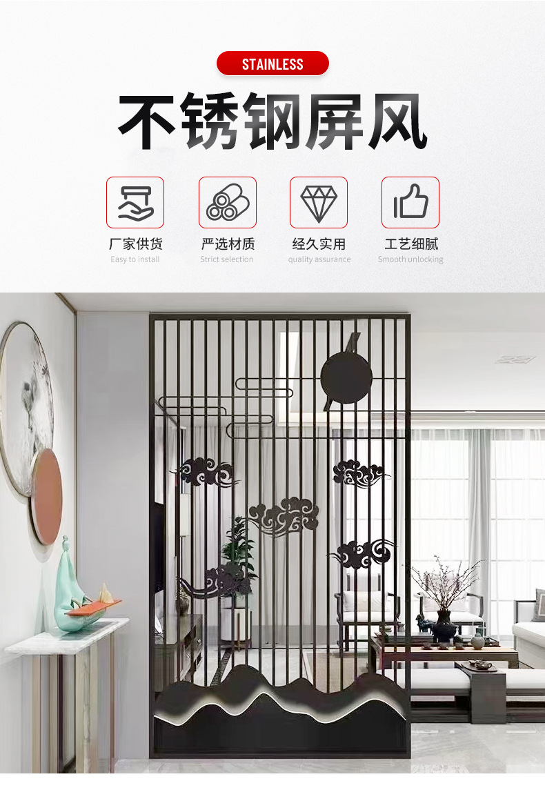 佛山不锈钢屏风餐厅客厅隔断铁艺304不锈钢屏风现代镂空客厅隔断