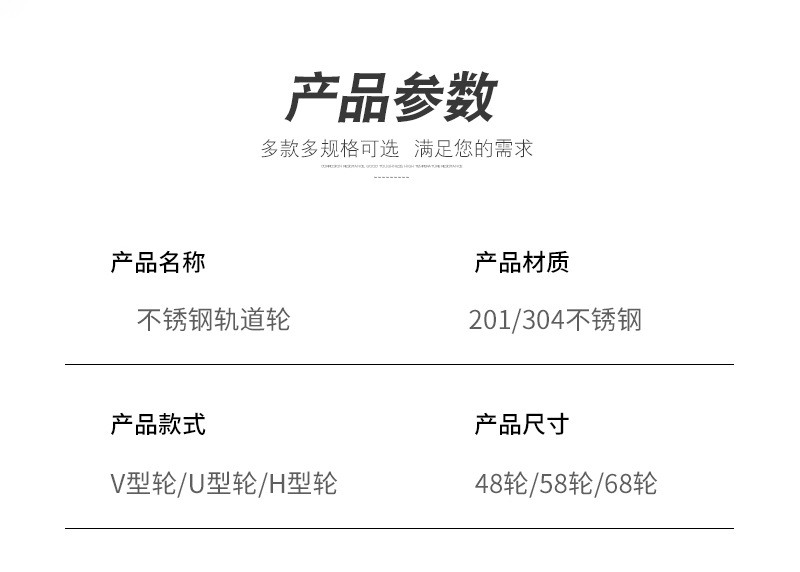 | 不锈钢304/201轨道轮 U脚架滑轮 移动门吊轮 U型V型H型槽脚轮角轮¥ 10.8立即购买 | 不锈钢滑轮304/201三角架轨道轮 起重滚轮钢丝绳吊轮 移动门配件¥ 12.98立即购买 | 厂家直供201/304不锈钢轨道轮U/V/H型吊环吊轮起重滑轮钢丝绳滑轮¥ 20.8立即购买 | ||||