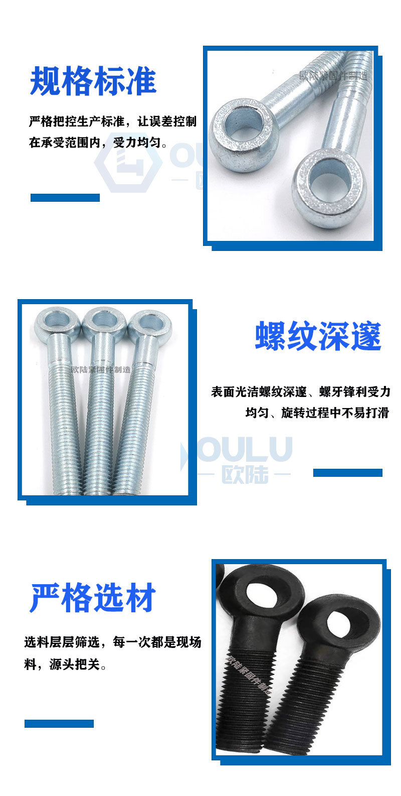 GB798活节螺丝 鱼眼带圈螺栓 眼圈螺丝 带孔螺杆镀锌发黑现货供应