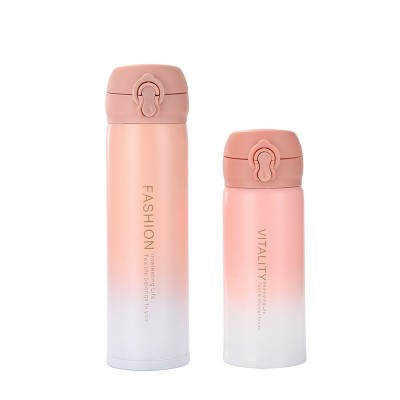 高颜值304不锈钢保温杯渐变弹跳杯真空礼品水杯便携学生杯子批发