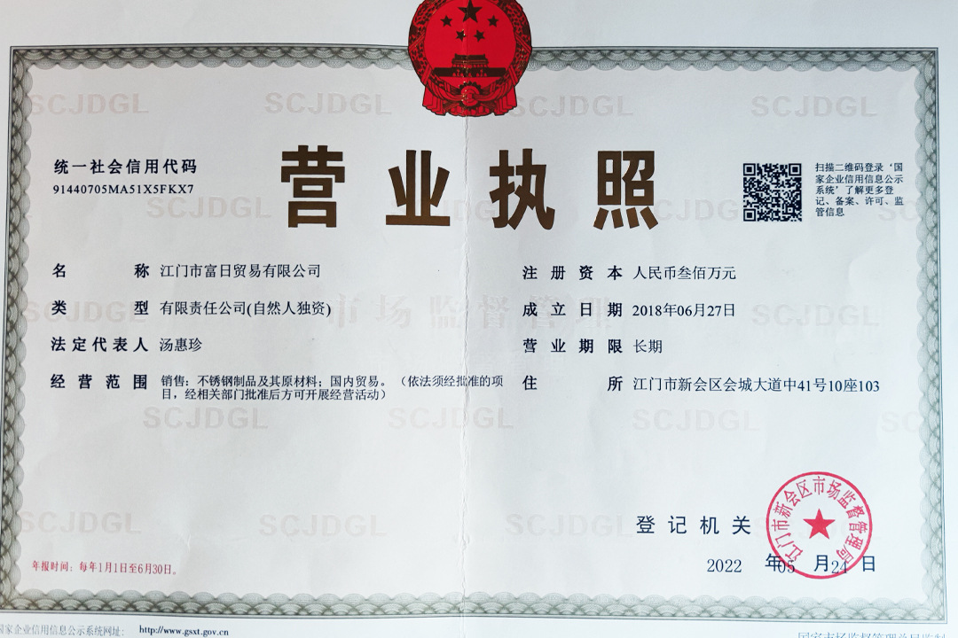 | 江门市富日贸易有限公司 联系地址:广东省江门市新会区今洲路18号富力南湖壹品花园A区2座1604 联系电话:13802618000 (微信同号) | ||