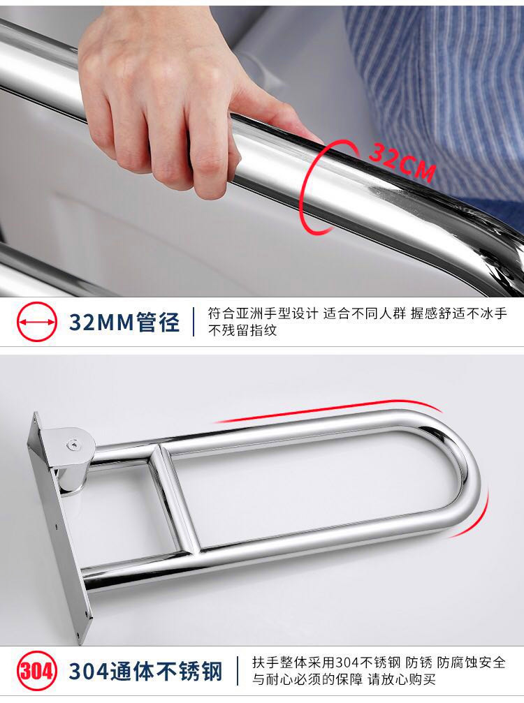 残疾人扶手 304不锈钢卫生间浴室厕所防滑把手U型上翻无障碍扶手