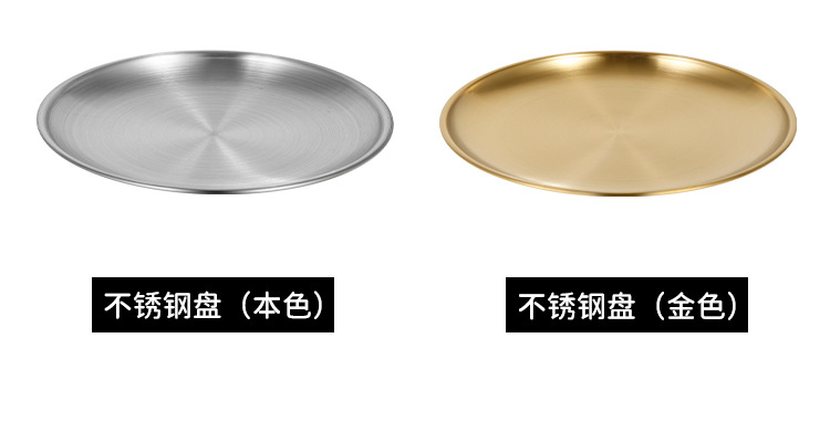 加厚韩式不锈钢金色圆盘水果盘蛋糕盘骨碟烤肉盘平底浅盘托盘