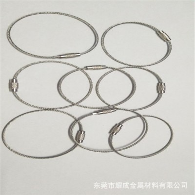 东莞市耀成金属专业生产的各类钢丝绳制品,从0.8-10mm之间的各种钢丝绳,有不锈钢钢丝绳、镀锌钢丝绳、包胶钢丝绳、钢丝圈、威也绳、行李牌用配件钢丝圈等等产品,常用规格的钢丝圈:线径1.0mm、1.2mm、1.5mm、2.0mm 长度可以按客户要求订做。