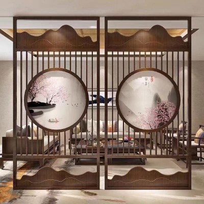 新中式不锈钢屏风隔断客厅进门玄关酒店大堂办公室镂空园林大座屏