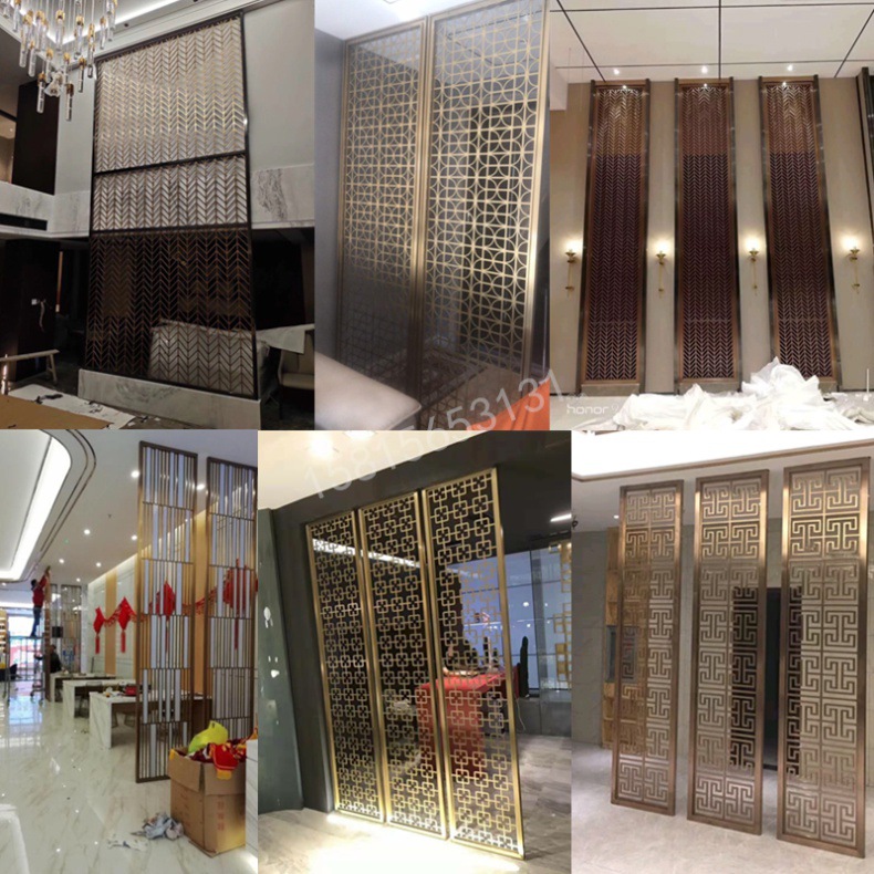 不锈钢屏风隔断金属花格现代轻奢镂空雕花新中式客厅入户玄关
