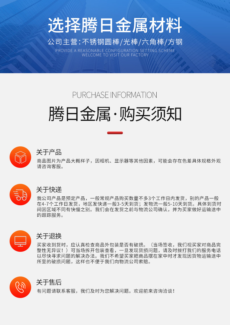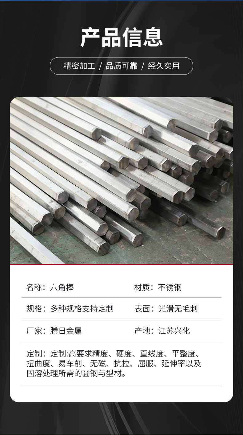 本网页所展示的有关【304不锈钢六角棒 厂家批发实心光亮六角棒可定可切割不锈钢六角棒_不锈钢棒材_江苏腾日金属材料有限公司】的信息/图片/参数等由鼎钢钢的会员【江苏腾日金属材料有限公司】提供,由鼎钢钢会员【江苏腾日金属材料有限公司】自行对信息/图片/参数等的真实性、准确性和合法性负责,本平台(本网站)仅提供展示服务,请谨慎交易,因交易而产生的法律关系及法律纠纷由您自行协商解决,本平台(本网站)对此不承担任何责任。您在本网页可以浏览【304不锈钢六角棒 厂家批发实心光亮六角棒可定可切割不锈钢六角棒_不锈钢棒材_江苏腾日金属材料有限公司】有关的信息/图片/价格等及提供【304不锈钢六角棒 厂家批发实心光亮六角棒可定可切割不锈钢六角棒_不锈钢棒材_江苏腾日金属材料有限公司】的商家公司简介、联系方式等信息。
