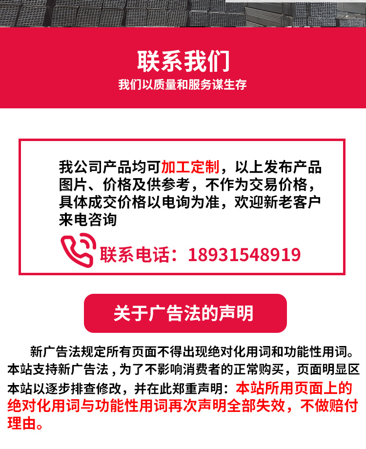 本网页所展示的有关【厂家批发201不锈钢方管304光亮矩形管车棚支架不锈钢方矩管装饰_不锈钢方管_唐山百丰实业有限公司】的信息/图片/参数等由鼎钢钢的会员【唐山百丰实业有限公司】提供,由鼎钢钢会员【唐山百丰实业有限公司】自行对信息/图片/参数等的真实性、准确性和合法性负责,本平台(本网站)仅提供展示服务,请谨慎交易,因交易而产生的法律关系及法律纠纷由您自行协商解决,本平台(本网站)对此不承担任何责任。您在本网页可以浏览【厂家批发201不锈钢方管304光亮矩形管车棚支架不锈钢方矩管装饰_不锈钢方管_唐山百丰实业有限公司】有关的信息/图片/价格等及提供【厂家批发201不锈钢方管304光亮矩形管车棚支架不锈钢方矩管装饰_不锈钢方管_唐山百丰实业有限公司】的商家公司简介、联系方式等信息。