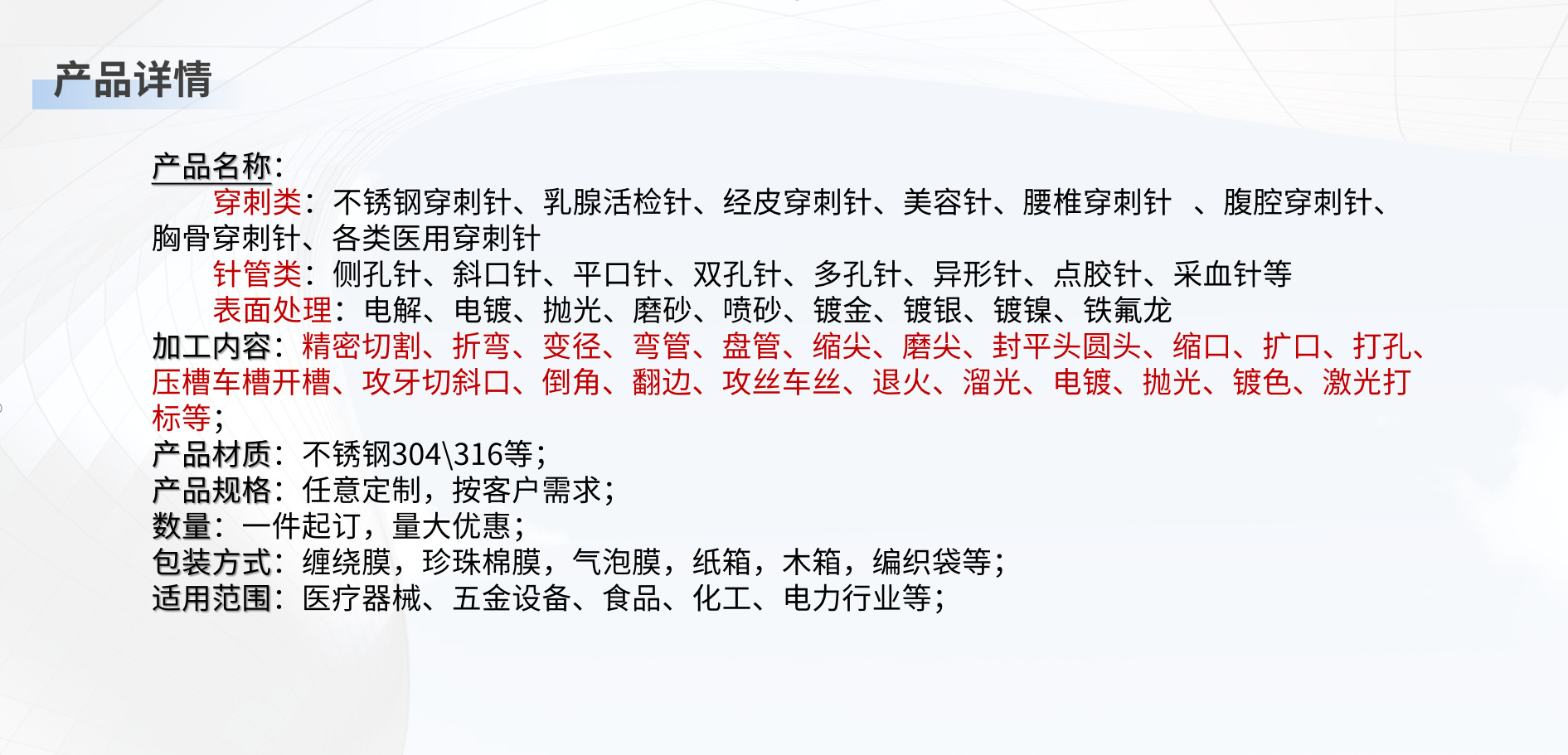 本网页所展示的有关【不锈钢针管穿刺针活检针刻度针取样针304精密无缝毛细管圆管316_不锈钢管材_东莞华开金属材料有限公司】的信息/图片/参数等由鼎钢钢的会员【东莞华开金属材料有限公司】提供,由鼎钢钢会员【东莞华开金属材料有限公司】自行对信息/图片/参数等的真实性、准确性和合法性负责,本平台(本网站)仅提供展示服务,请谨慎交易,因交易而产生的法律关系及法律纠纷由您自行协商解决,本平台(本网站)对此不承担任何责任。您在本网页可以浏览【不锈钢针管穿刺针活检针刻度针取样针304精密无缝毛细管圆管316_不锈钢管材_东莞华开金属材料有限公司】有关的信息/图片/价格等及提供【不锈钢针管穿刺针活检针刻度针取样针304精密无缝毛细管圆管316_不锈钢管材_东莞华开金属材料有限公司】的商家公司简介、联系方式等信息。