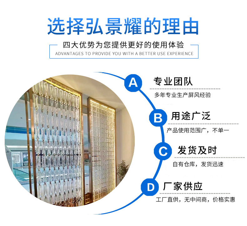 本网页所展示的有关【不锈钢屏风现代简约玄关售楼处金属隔断酒店镂空雕花水晶玻璃屏风_不锈钢屏风_佛山市弘景耀金属有限公司】的信息/图片/参数等由鼎钢钢的会员【佛山市弘景耀金属有限公司】提供,由鼎钢钢会员【佛山市弘景耀金属有限公司】自行对信息/图片/参数等的真实性、准确性和合法性负责,本平台(本网站)仅提供展示服务,请谨慎交易,因交易而产生的法律关系及法律纠纷由您自行协商解决,本平台(本网站)对此不承担任何责任。您在本网页可以浏览【不锈钢屏风现代简约玄关售楼处金属隔断酒店镂空雕花水晶玻璃屏风_不锈钢屏风_佛山市弘景耀金属有限公司】有关的信息/图片/价格等及提供【不锈钢屏风现代简约玄关售楼处金属隔断酒店镂空雕花水晶玻璃屏风_不锈钢屏风_佛山市弘景耀金属有限公司】的商家公司简介、联系方式等信息。