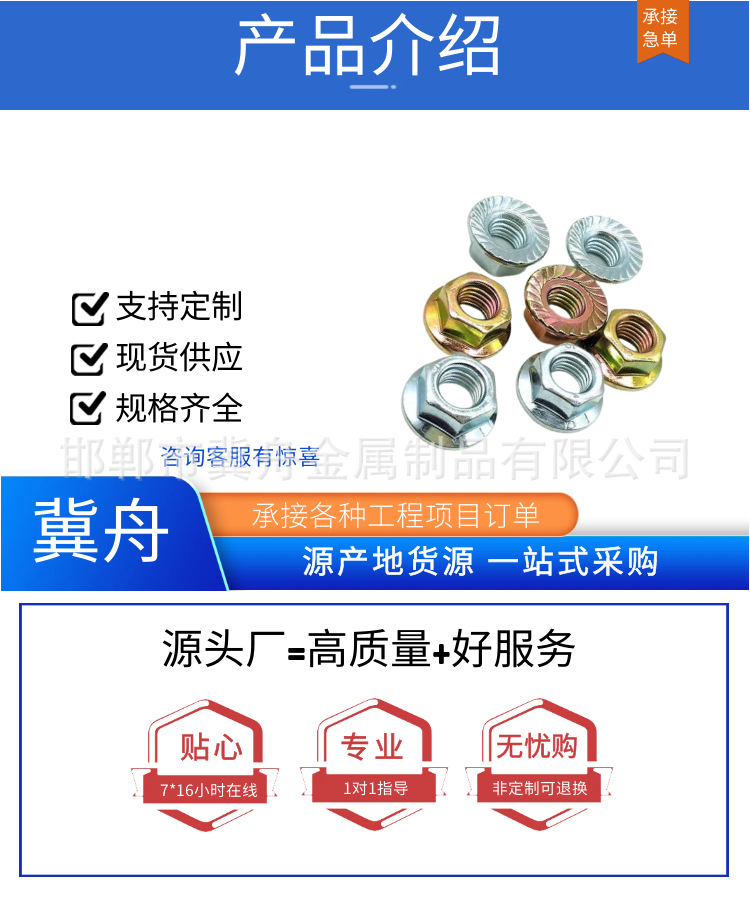 本网页所展示的有关【六角法兰螺母 304不锈钢黑色白色彩色防滑螺帽M4M5M6M8M10M12_不锈钢制品_邯郸市冀舟金属制品有限公司】的信息/图片/参数等由鼎钢钢的会员【邯郸市冀舟金属制品有限公司】提供,由鼎钢钢会员【邯郸市冀舟金属制品有限公司】自行对信息/图片/参数等的真实性、准确性和合法性负责,本平台(本网站)仅提供展示服务,请谨慎交易,因交易而产生的法律关系及法律纠纷由您自行协商解决,本平台(本网站)对此不承担任何责任。您在本网页可以浏览【六角法兰螺母 304不锈钢黑色白色彩色防滑螺帽M4M5M6M8M10M12_不锈钢制品_邯郸市冀舟金属制品有限公司】有关的信息/图片/价格等及提供【六角法兰螺母 304不锈钢黑色白色彩色防滑螺帽M4M5M6M8M10M12_不锈钢制品_邯郸市冀舟金属制品有限公司】的商家公司简介、联系方式等信息。