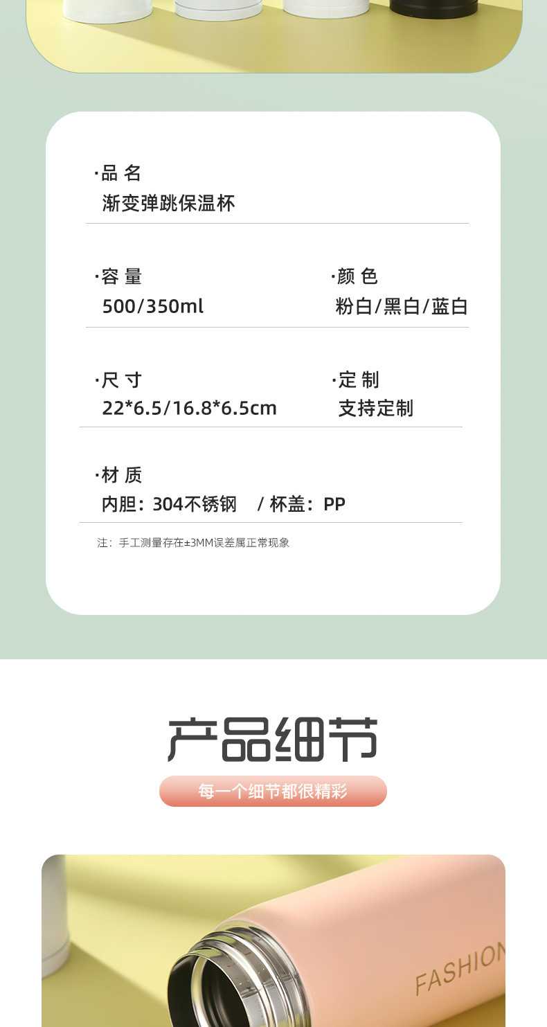 本网页所展示的有关【304不锈钢保温杯创意学生水杯便携车载礼品杯渐变弹跳杯工厂批发_不锈钢杯_永康市熹度不锈钢制品厂】的信息/图片/参数等由鼎钢钢的会员【永康市熹度不锈钢制品厂】提供,由鼎钢钢会员【永康市熹度不锈钢制品厂】自行对信息/图片/参数等的真实性、准确性和合法性负责,本平台(本网站)仅提供展示服务,请谨慎交易,因交易而产生的法律关系及法律纠纷由您自行协商解决,本平台(本网站)对此不承担任何责任。您在本网页可以浏览【304不锈钢保温杯创意学生水杯便携车载礼品杯渐变弹跳杯工厂批发_不锈钢杯_永康市熹度不锈钢制品厂】有关的信息/图片/价格等及提供【304不锈钢保温杯创意学生水杯便携车载礼品杯渐变弹跳杯工厂批发_不锈钢杯_永康市熹度不锈钢制品厂】的商家公司简介、联系方式等信息。