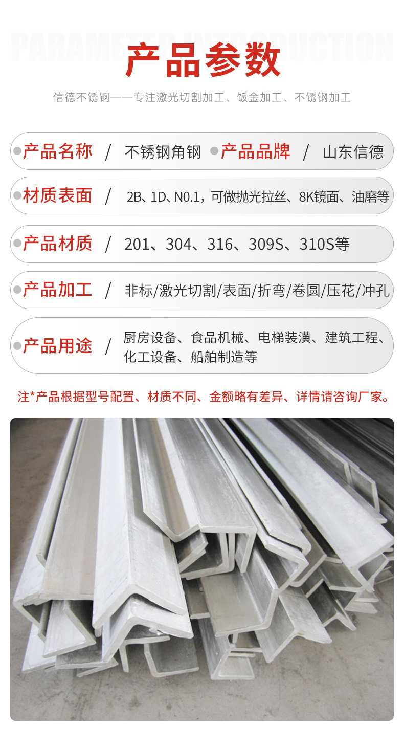 本网页所展示的有关【不锈钢角钢316L角钢可切割热轧等边角钢角铁 不锈钢角钢_不锈钢角钢_山东信德不锈钢有限公司】的信息/图片/参数等由鼎钢钢的会员【山东信德不锈钢有限公司】提供,由鼎钢钢会员【山东信德不锈钢有限公司】自行对信息/图片/参数等的真实性、准确性和合法性负责,本平台(本网站)仅提供展示服务,请谨慎交易,因交易而产生的法律关系及法律纠纷由您自行协商解决,本平台(本网站)对此不承担任何责任。您在本网页可以浏览【不锈钢角钢316L角钢可切割热轧等边角钢角铁 不锈钢角钢_不锈钢角钢_山东信德不锈钢有限公司】有关的信息/图片/价格等及提供【不锈钢角钢316L角钢可切割热轧等边角钢角铁 不锈钢角钢_不锈钢角钢_山东信德不锈钢有限公司】的商家公司简介、联系方式等信息。