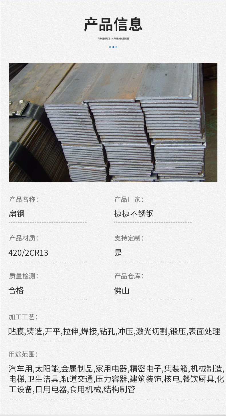 本网页所展示的有关【304不锈钢扁钢 201扁钢 316L不锈钢扁钢 不锈钢扁钢 扁铁扁条批发_不锈钢扁钢_佛山市顺德区乐从镇捷捷不锈钢经营部】的信息/图片/参数等由鼎钢钢的会员【佛山市顺德区乐从镇捷捷不锈钢经营部】提供,由鼎钢钢会员【佛山市顺德区乐从镇捷捷不锈钢经营部】自行对信息/图片/参数等的真实性、准确性和合法性负责,本平台(本网站)仅提供展示服务,请谨慎交易,因交易而产生的法律关系及法律纠纷由您自行协商解决,本平台(本网站)对此不承担任何责任。您在本网页可以浏览【304不锈钢扁钢 201扁钢 316L不锈钢扁钢 不锈钢扁钢 扁铁扁条批发_不锈钢扁钢_佛山市顺德区乐从镇捷捷不锈钢经营部】有关的信息/图片/价格等及提供【304不锈钢扁钢 201扁钢 316L不锈钢扁钢 不锈钢扁钢 扁铁扁条批发_不锈钢扁钢_佛山市顺德区乐从镇捷捷不锈钢经营部】的商家公司简介、联系方式等信息。