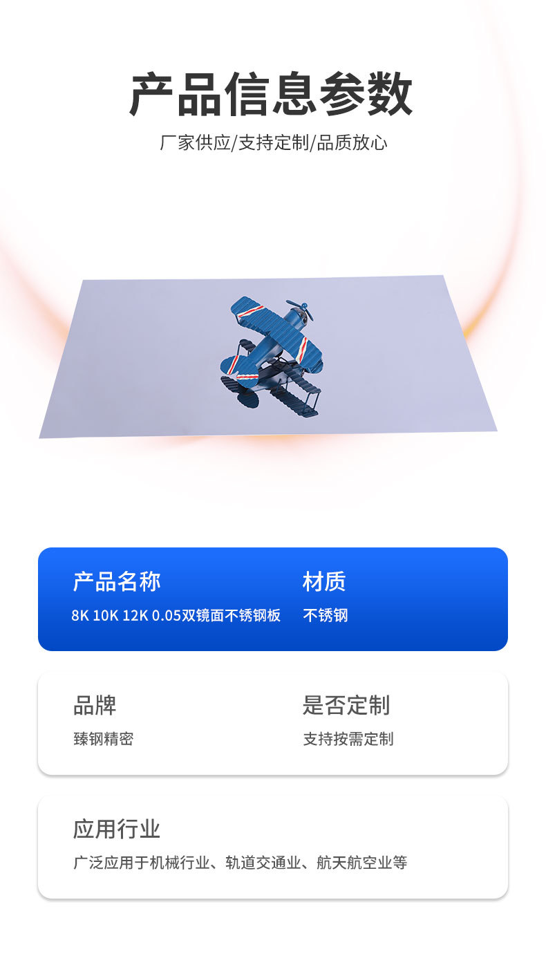 本网页所展示的有关【供应双镜面不锈钢带8K10K12K0.05不锈钢板工业板冷轧板拉丝镇面板_不锈钢板_臻钢精密科技(江苏)有限公司】的信息/图片/参数等由鼎钢钢的会员【臻钢精密科技(江苏)有限公司】提供,由鼎钢钢会员【臻钢精密科技(江苏)有限公司】自行对信息/图片/参数等的真实性、准确性和合法性负责,本平台(本网站)仅提供展示服务,请谨慎交易,因交易而产生的法律关系及法律纠纷由您自行协商解决,本平台(本网站)对此不承担任何责任。您在本网页可以浏览【供应双镜面不锈钢带8K10K12K0.05不锈钢板工业板冷轧板拉丝镇面板_不锈钢板_臻钢精密科技(江苏)有限公司】有关的信息/图片/价格等及提供【供应双镜面不锈钢带8K10K12K0.05不锈钢板工业板冷轧板拉丝镇面板_不锈钢板_臻钢精密科技(江苏)有限公司】的商家公司简介、联系方式等信息。