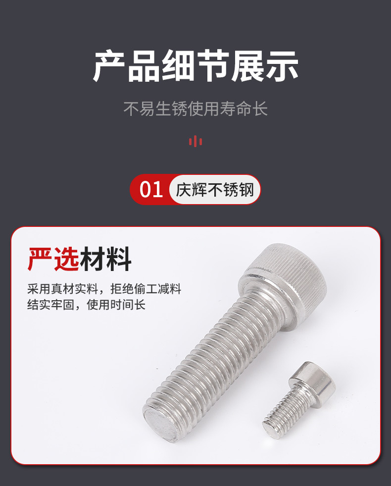 本网页所展示的有关【不锈钢内六角螺丝 304圆柱头螺栓杯头螺丝内六方螺钉厂 家供应_紧固件_瑞安市庆辉不锈钢制品有限公司】的信息/图片/参数等由鼎钢钢的会员【瑞安市庆辉不锈钢制品有限公司】提供,由鼎钢钢会员【瑞安市庆辉不锈钢制品有限公司】自行对信息/图片/参数等的真实性、准确性和合法性负责,本平台(本网站)仅提供展示服务,请谨慎交易,因交易而产生的法律关系及法律纠纷由您自行协商解决,本平台(本网站)对此不承担任何责任。您在本网页可以浏览【不锈钢内六角螺丝 304圆柱头螺栓杯头螺丝内六方螺钉厂 家供应_紧固件_瑞安市庆辉不锈钢制品有限公司】有关的信息/图片/价格等及提供【不锈钢内六角螺丝 304圆柱头螺栓杯头螺丝内六方螺钉厂 家供应_紧固件_瑞安市庆辉不锈钢制品有限公司】的商家公司简介、联系方式等信息。