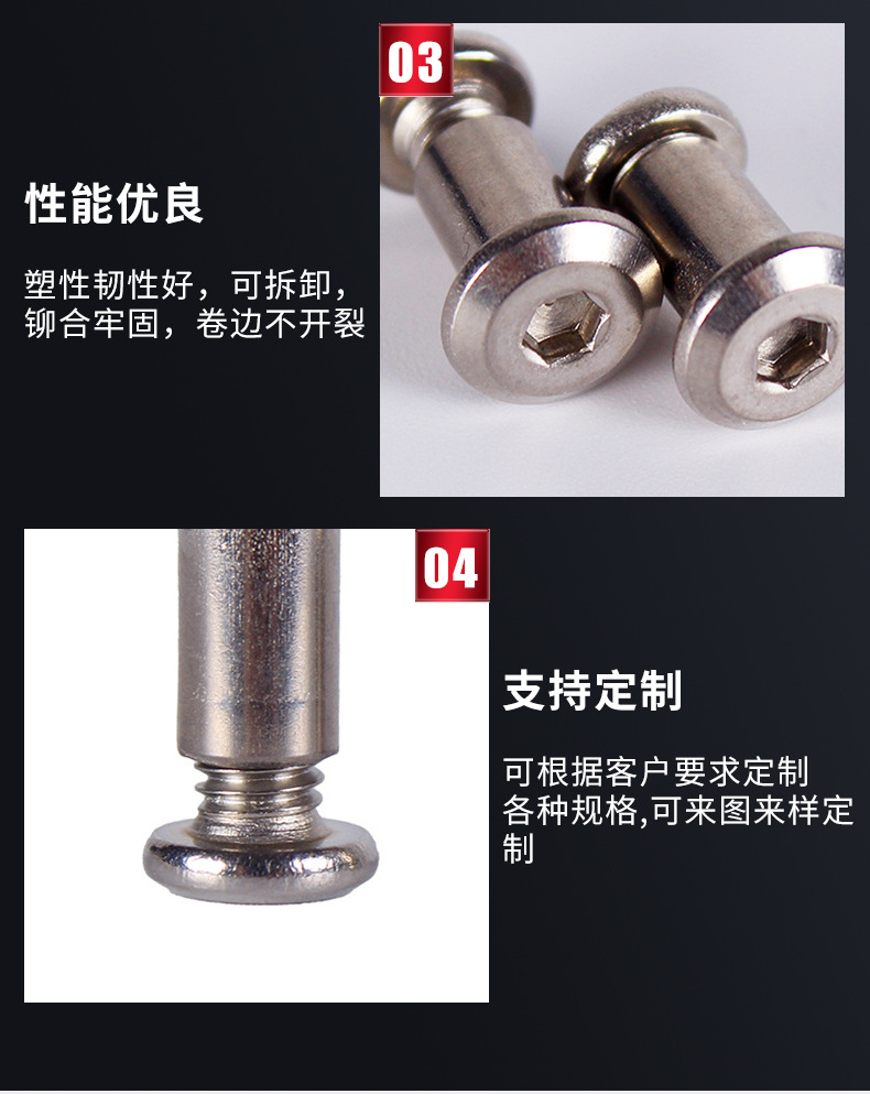 本网页所展示的有关【304不锈钢内六角子母对锁铆钉连接件螺丝夹板倒边对锁家具螺丝_紧固件_东莞市驰伟五金有限公司】的信息/图片/参数等由鼎钢钢的会员【东莞市驰伟五金有限公司】提供,由鼎钢钢会员【东莞市驰伟五金有限公司】自行对信息/图片/参数等的真实性、准确性和合法性负责,本平台(本网站)仅提供展示服务,请谨慎交易,因交易而产生的法律关系及法律纠纷由您自行协商解决,本平台(本网站)对此不承担任何责任。您在本网页可以浏览【304不锈钢内六角子母对锁铆钉连接件螺丝夹板倒边对锁家具螺丝_紧固件_东莞市驰伟五金有限公司】有关的信息/图片/价格等及提供【304不锈钢内六角子母对锁铆钉连接件螺丝夹板倒边对锁家具螺丝_紧固件_东莞市驰伟五金有限公司】的商家公司简介、联系方式等信息。