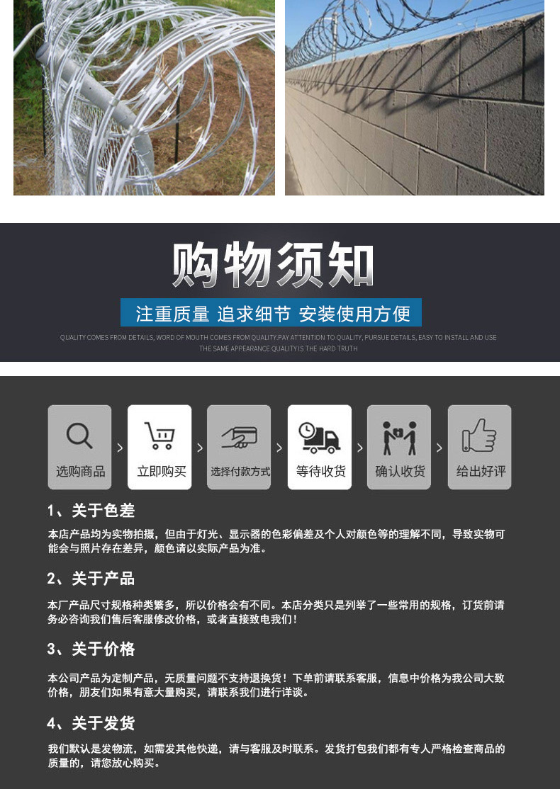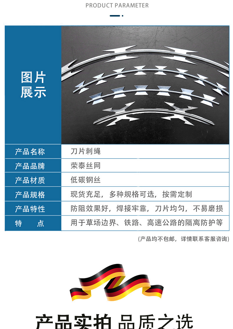 本网页所展示的有关【刀片刺绳不锈钢果园铁蒺藜监狱围墙防爬刺网滚笼热镀锌防护刺丝网_其它_安平县荣泰金属网栏有限公司】的信息/图片/参数等由鼎钢钢的会员【安平县荣泰金属网栏有限公司】提供,由鼎钢钢会员【安平县荣泰金属网栏有限公司】自行对信息/图片/参数等的真实性、准确性和合法性负责,本平台(本网站)仅提供展示服务,请谨慎交易,因交易而产生的法律关系及法律纠纷由您自行协商解决,本平台(本网站)对此不承担任何责任。您在本网页可以浏览【刀片刺绳不锈钢果园铁蒺藜监狱围墙防爬刺网滚笼热镀锌防护刺丝网_其它_安平县荣泰金属网栏有限公司】有关的信息/图片/价格等及提供【刀片刺绳不锈钢果园铁蒺藜监狱围墙防爬刺网滚笼热镀锌防护刺丝网_其它_安平县荣泰金属网栏有限公司】的商家公司简介、联系方式等信息。