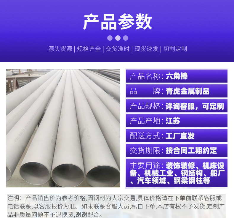 本网页所展示的有关【304 316L不锈钢无缝管焊管弯管卫生管EP管BA管精密管零切管厚壁管_不锈钢无缝管_江苏青虎金属制品有限公司】的信息/图片/参数等由鼎钢钢的会员【江苏青虎金属制品有限公司】提供,由鼎钢钢会员【江苏青虎金属制品有限公司】自行对信息/图片/参数等的真实性、准确性和合法性负责,本平台(本网站)仅提供展示服务,请谨慎交易,因交易而产生的法律关系及法律纠纷由您自行协商解决,本平台(本网站)对此不承担任何责任。您在本网页可以浏览【304 316L不锈钢无缝管焊管弯管卫生管EP管BA管精密管零切管厚壁管_不锈钢无缝管_江苏青虎金属制品有限公司】有关的信息/图片/价格等及提供【304 316L不锈钢无缝管焊管弯管卫生管EP管BA管精密管零切管厚壁管_不锈钢无缝管_江苏青虎金属制品有限公司】的商家公司简介、联系方式等信息。