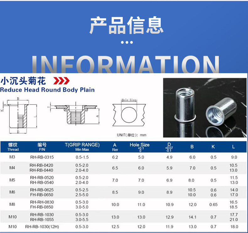 本网页所展示的有关【镀锌通孔平头菊花小沉头拉钉螺母光面圆柱光身白锌拉铆螺母厂家发_紧固件_佛山市南海区驰通艾锐五金厂】的信息/图片/参数等由鼎钢钢的会员【佛山市南海区驰通艾锐五金厂】提供,由鼎钢钢会员【佛山市南海区驰通艾锐五金厂】自行对信息/图片/参数等的真实性、准确性和合法性负责,本平台(本网站)仅提供展示服务,请谨慎交易,因交易而产生的法律关系及法律纠纷由您自行协商解决,本平台(本网站)对此不承担任何责任。您在本网页可以浏览【镀锌通孔平头菊花小沉头拉钉螺母光面圆柱光身白锌拉铆螺母厂家发_紧固件_佛山市南海区驰通艾锐五金厂】有关的信息/图片/价格等及提供【镀锌通孔平头菊花小沉头拉钉螺母光面圆柱光身白锌拉铆螺母厂家发_紧固件_佛山市南海区驰通艾锐五金厂】的商家公司简介、联系方式等信息。